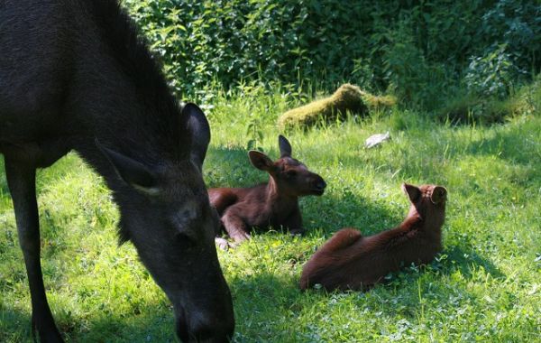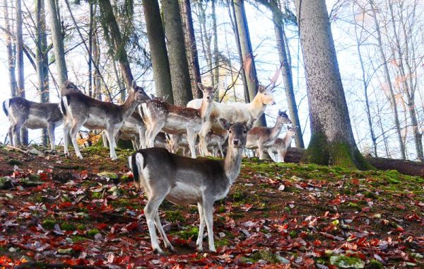 Die Wisenthaltung im Wildpark hat wieder begonnen. Die aktuellen Tiere kommen aus dem Wisentprojekt des Zweckverbands Haus im Donaumoos bei Ingolstadt, es handelt sich um zwei ältere Weibchen und ein männliches Kalb.