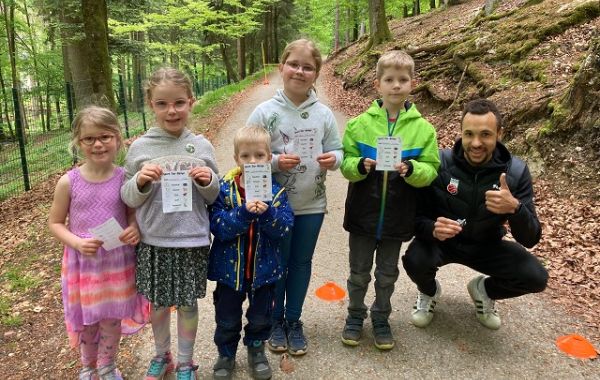 Landrat Dr. Hermann Ulm, Kreiskämmerin Carmen Stumpf und Wildparkleiter Daniel Schäffer überreichten der Familie als kleine Aufmerksamkeit einen Präsentkorb.
